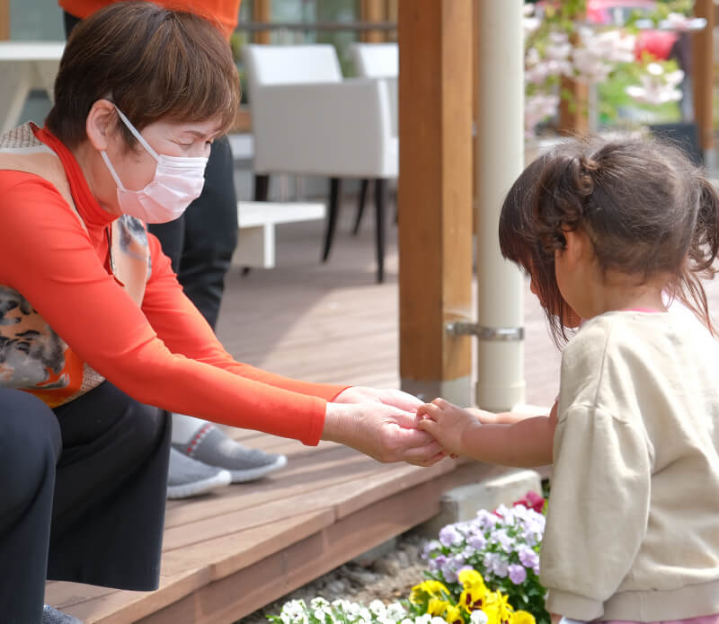 ご自宅までお迎えに上がり、手作りの食事の提供や入浴などのお手伝い、一人ひとりの暮らしや体調に合わせた体調管理、機能訓練を実施します。多様なレクリエーションや季節の行事を通して、同世代だけでなく隣にある保育園の子ども達や地域の方々など多世代での交流の輪が広がるよう支援させていただきます。
